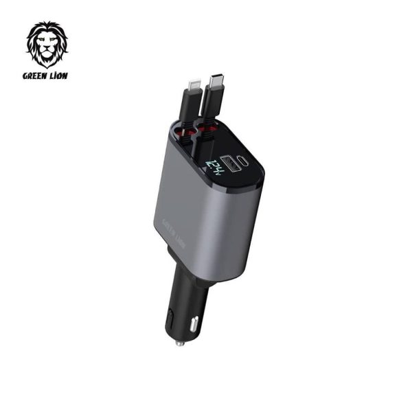 شارژر فندکی یکپارچه با کابل های جمع شونده گرین Green 38w integrated car charger with retractable cables