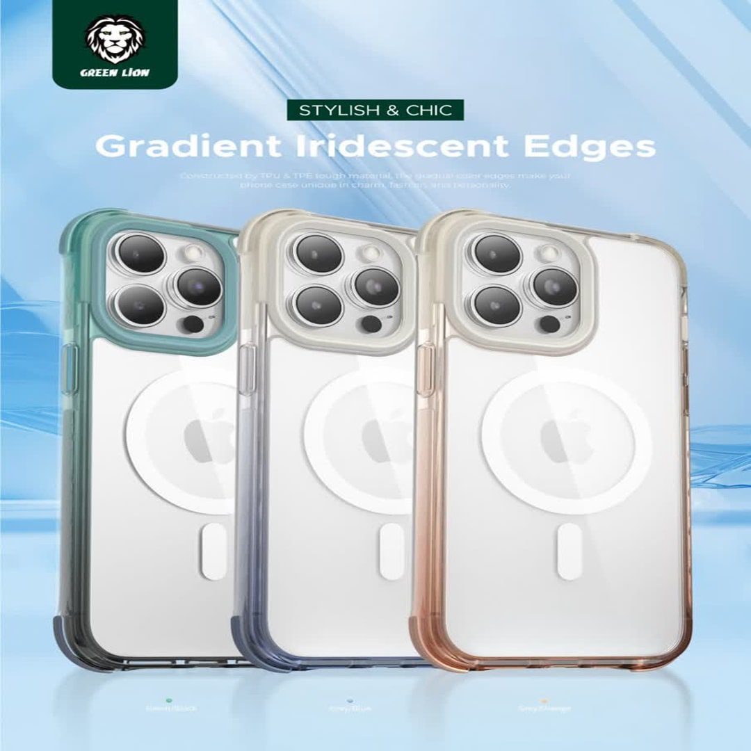 قاب مگ سیف با لبه های رنگین کمانی گرادیان گرین Green gradient iridescent edges