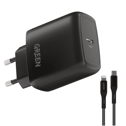 شارژر 20 وات گرین همراه با کابل لایتنینگ Green Type-C Port Wall Charger 20W with PVC Type-C to Lightning
