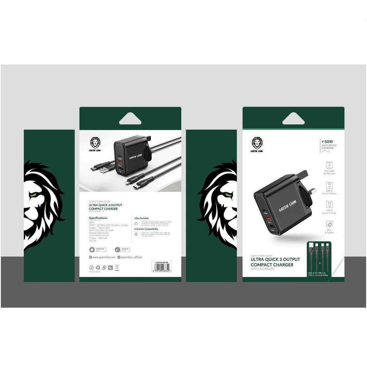 شارژر دیواری 50 وات گرین Green Ultra Quick 3 output Compact Charger
