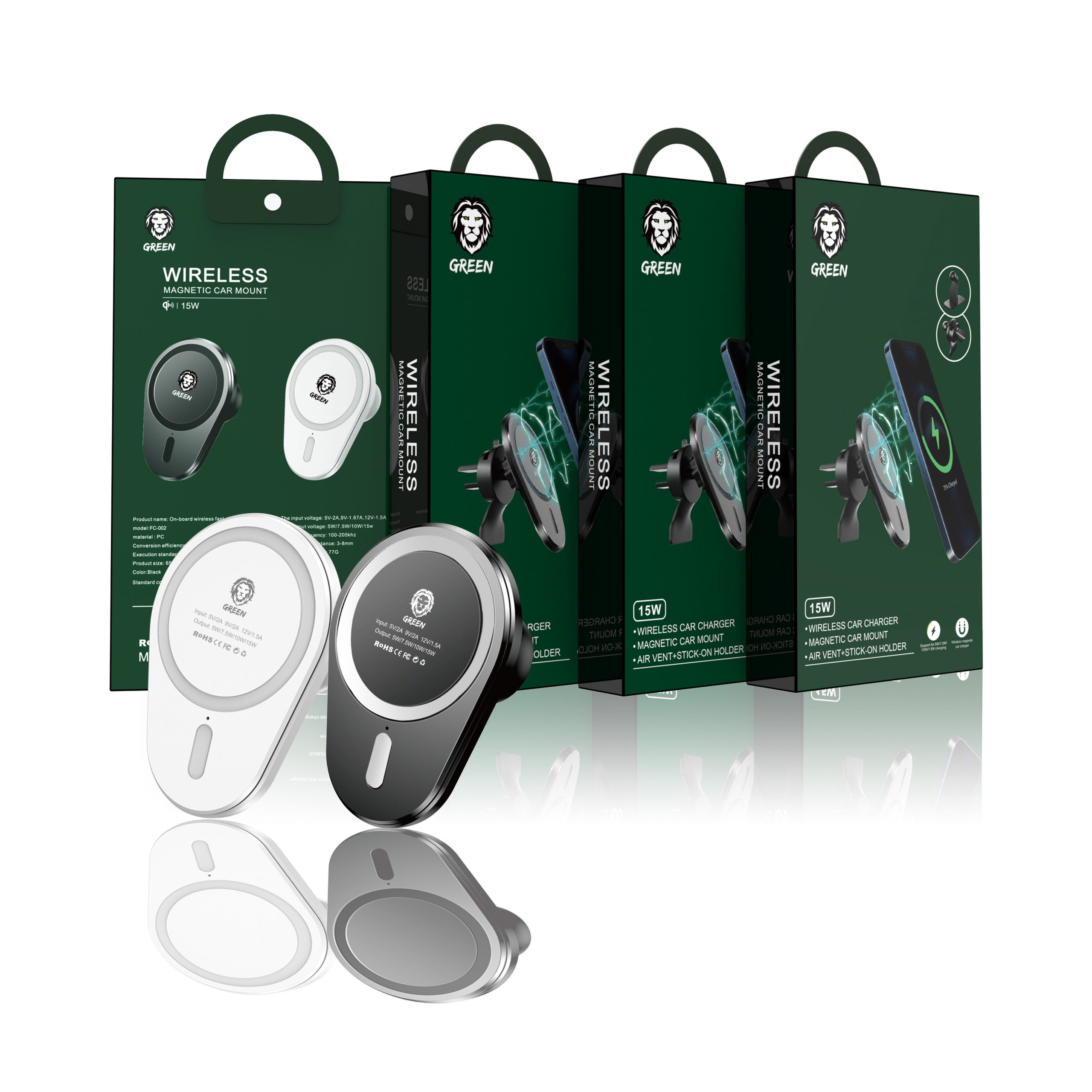 پایه نگهدارنده و شارژر وایرلس 15 وات گرین Green Lion Wireless Magnetic Car Charger / Mount 15W