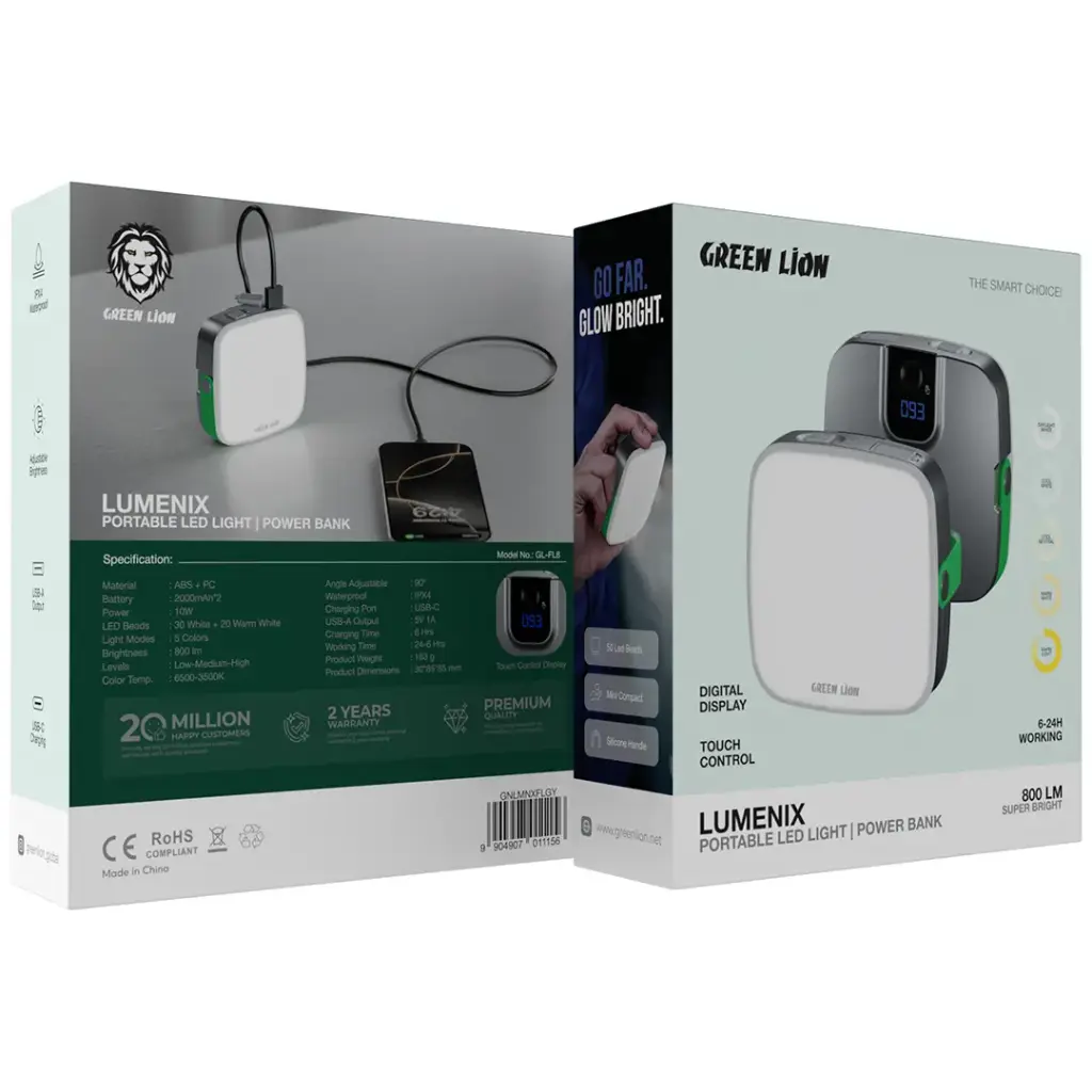 چراغ ال ای دی به همراه پاور بانک لومنیکس گرین Green Lumenix LED Light with Power Bank