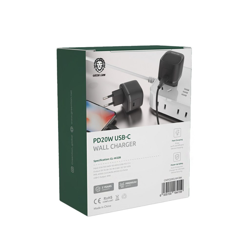 سر شارژر دیواری تک پورت 20 واتی گرین Green PD20W USB-C Wall Charger GL-W22B