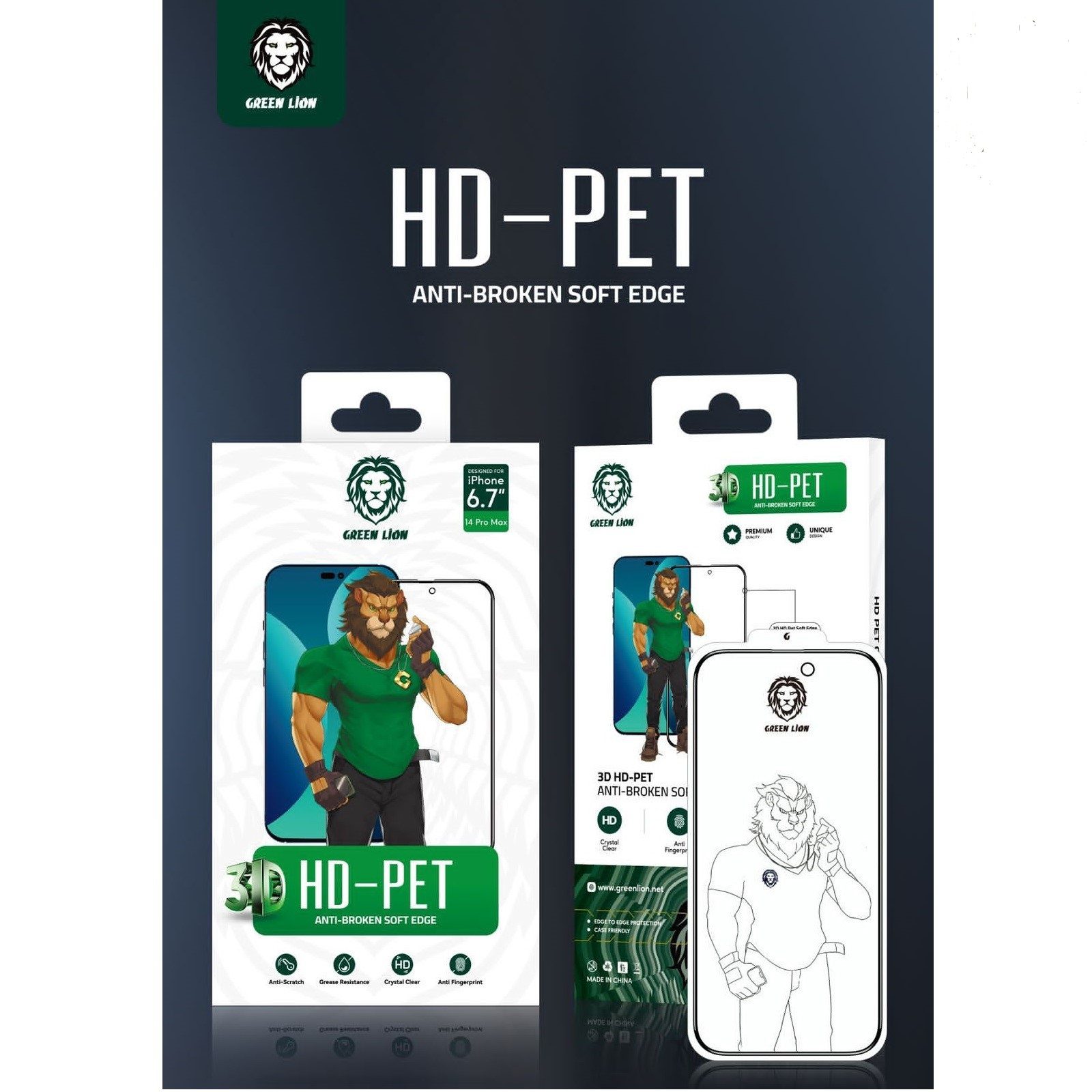 گلس شفاف پت اچ دی سری 14 گرین Green PET HD Glass 14/14Pro/14Plus/14ProMax