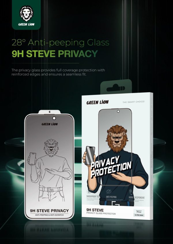 گلس استیو پرایوسی آیفون سری 16 گرین Green Steve Privacy Glass 16 Series
